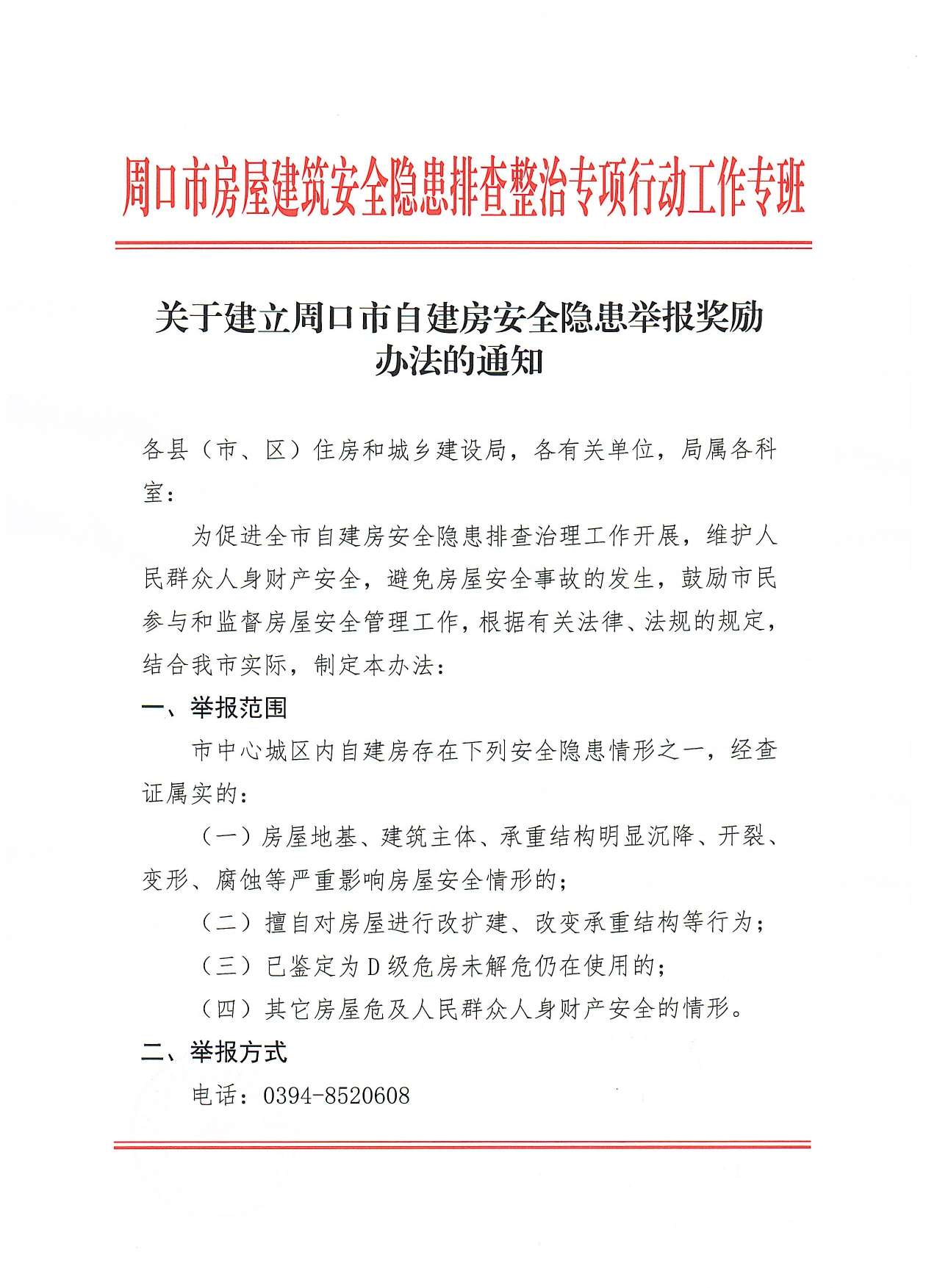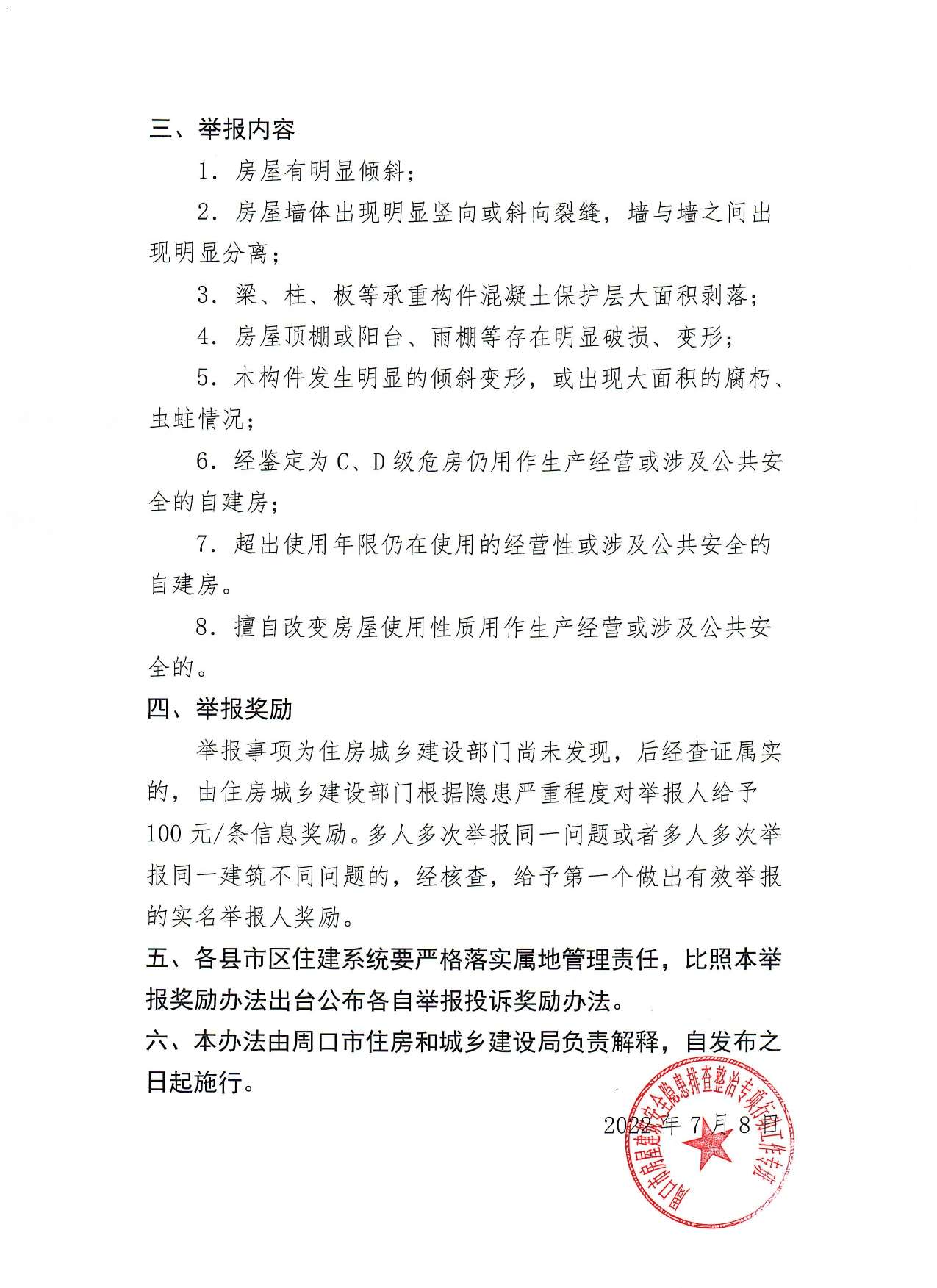 自建房隐患举报奖励办法筑小讯2022年07月11日发布关注私信01329123 文章来源于周口市住建局,原文链接: 自建房隐患举报奖励办法 © 版权声明本资讯不代表筑小讯的观点、立场,所涉信息、数据来源于省市部建委公开发布的信息或第三方,筑小讯不对其准确性、可靠性或完善性提供任何明示或暗示的保证,仅供参考。如果您认为本条资讯存在侵权或不妥之处,请通过官网客服或邮件(zxp@xddjob.com)与我们联系,我们将尽快删除或纠正。如因此给您带来不便,我们深表歉意,感谢您的理解和支持!THE END公示公告# 周口市# 周口市住建局 此条有用,点赞收藏。如有疑问,相约评论区!点赞123打赏 分享QQ空间微博QQ好友海报分享复制链接收藏