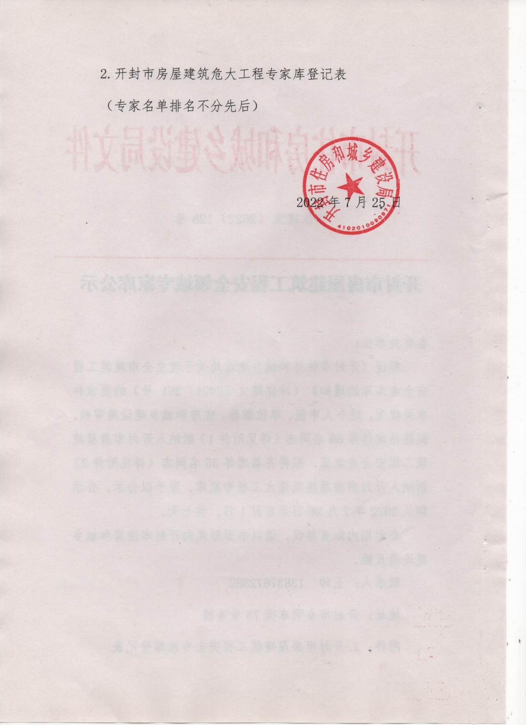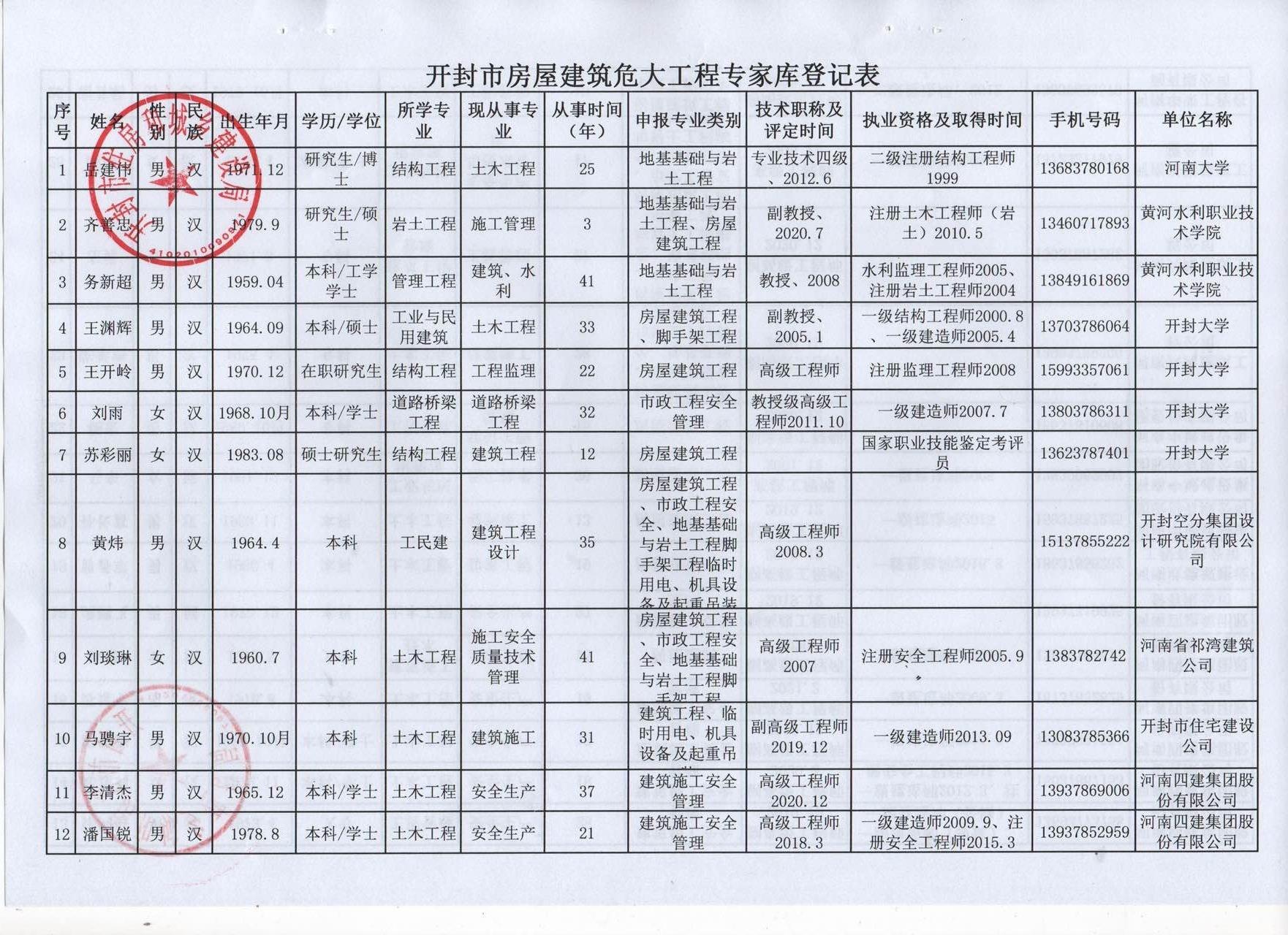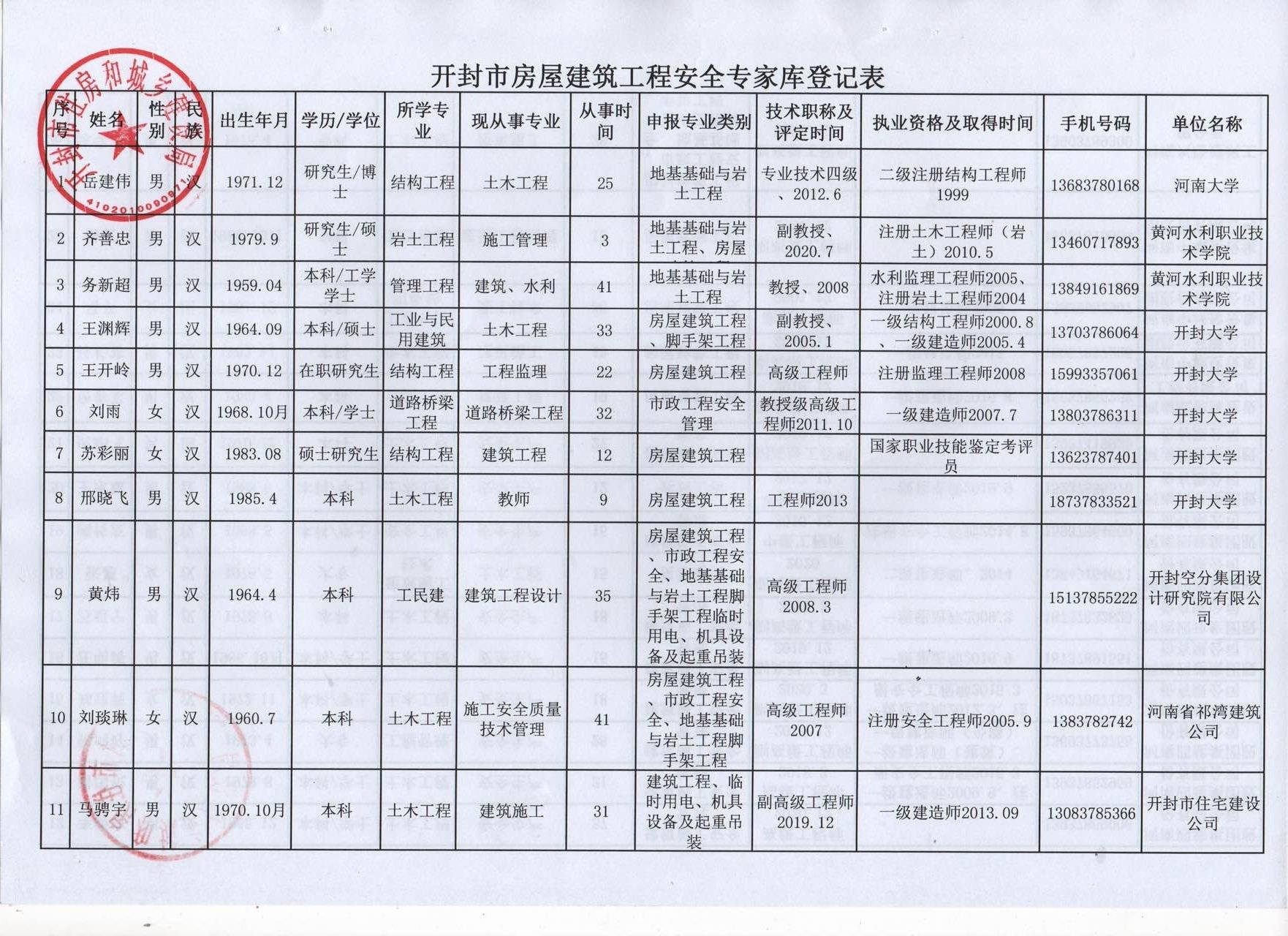 文章来源于开封市住建局,原文链接: 开封市房屋建筑工程安全领城专家库公示