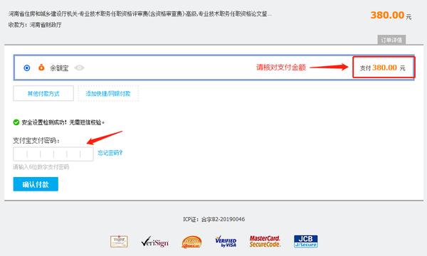 4.选择支付宝或微信登录进行扫码缴费(380元/人,以支付宝为例)。