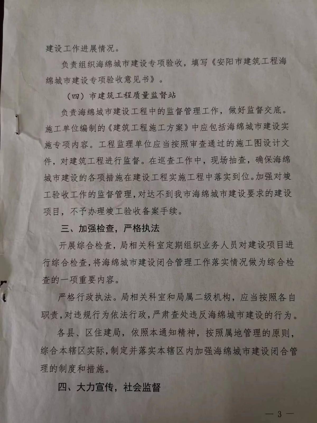 安阳市住房和城乡建设局关于实行海绵城市建设闭合管理工作的通知筑小讯2023年06月07日发布关注私信0258412 相关阅读 文章来源于安阳市住建局,原文链接: 安阳市住房和城乡建设局关于实行海绵城市建设闭合管理工作的通知 © 版权声明本资讯不代表筑小讯的观点、立场,所涉信息、数据来源于省市部建委公开发布的信息或第三方,筑小讯不对其准确性、可靠性或完善性提供任何明示或暗示的保证,仅供参考。如果您认为本条资讯存在侵权或不妥之处,请通过官网客服或邮件(zxp@xddjob.com)与我们联系,我们将尽快删除或纠正。如因此给您带来不便,我们深表歉意,感谢您的理解和支持!THE END文件通知# 通知# 安阳市 此条有用,点赞收藏。如有疑问,相约评论区!点赞12打赏 分享QQ空间微博QQ好友海报分享复制链接收藏