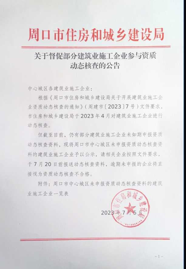 文章来源于周口市住建局,原文链接: 关于提醒部分建筑业施工企业参与资质动态核查的通知
