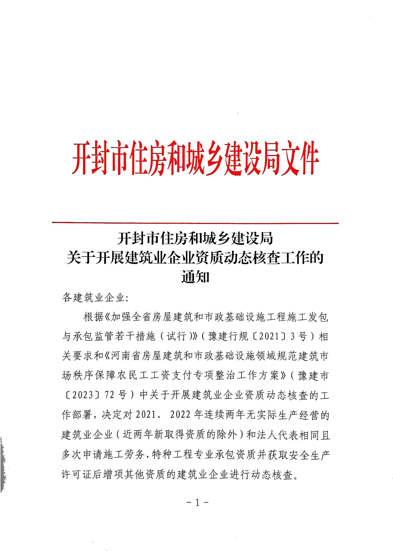 文章来源于开封市住建局,原文链接: 开封市住房和城乡建设局关于开展建筑业企业资质动态核查工作的通知