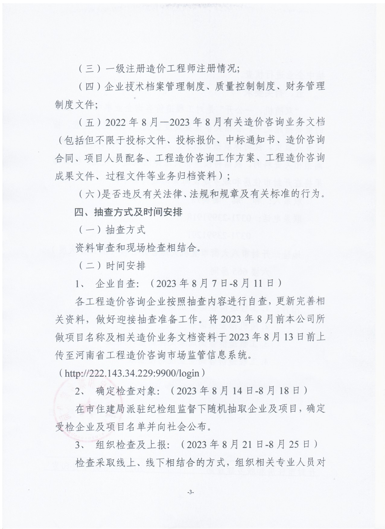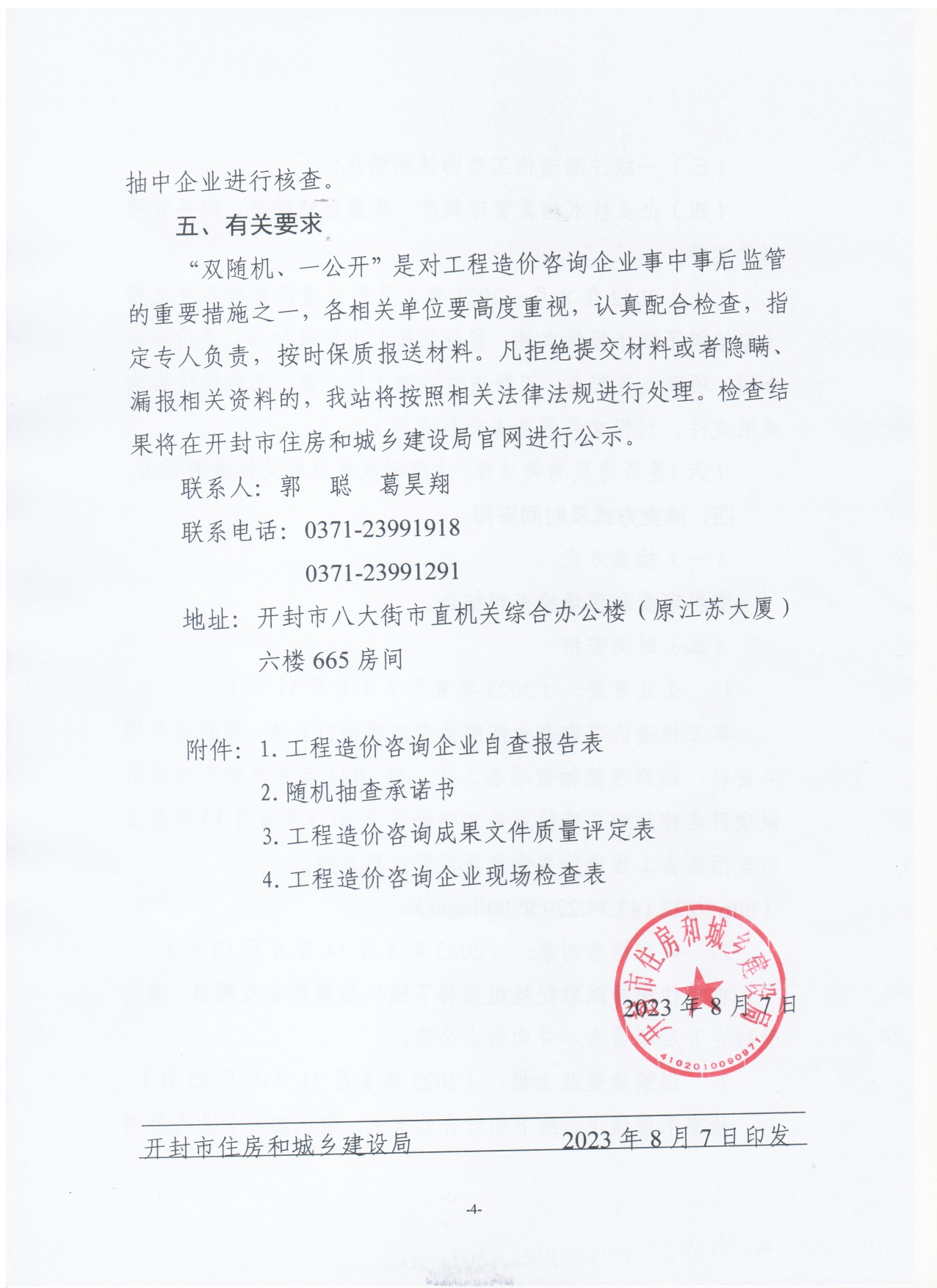 开封市住房和城乡建设局关于2023年度工程造价咨询行业“双随机、一公开”检查的通知筑小讯2023年08月08日发布关注私信0140276 2023年双随机,一公开附件1-4.pdf 文章来源于开封市住建局,原文链接: 开封市住房和城乡建设局关于2023年度工程造价咨询行业“双随机、一公开”检查的通知 © 版权声明本资讯不代表筑小讯的观点、立场,所涉信息、数据来源于省市部建委公开发布的信息或第三方,筑小讯不对其准确性、可靠性或完善性提供任何明示或暗示的保证,仅供参考。如果您认为本条资讯存在侵权或不妥之处,请通过官网客服或邮件(zxp@xddjob.com)与我们联系,我们将尽快删除或纠正。如因此给您带来不便,我们深表歉意,感谢您的理解和支持!THE END公示公告# 通知# 开封市 此条有用,点赞收藏。如有疑问,相约评论区!点赞76打赏 分享QQ空间微博QQ好友海报分享复制链接收藏