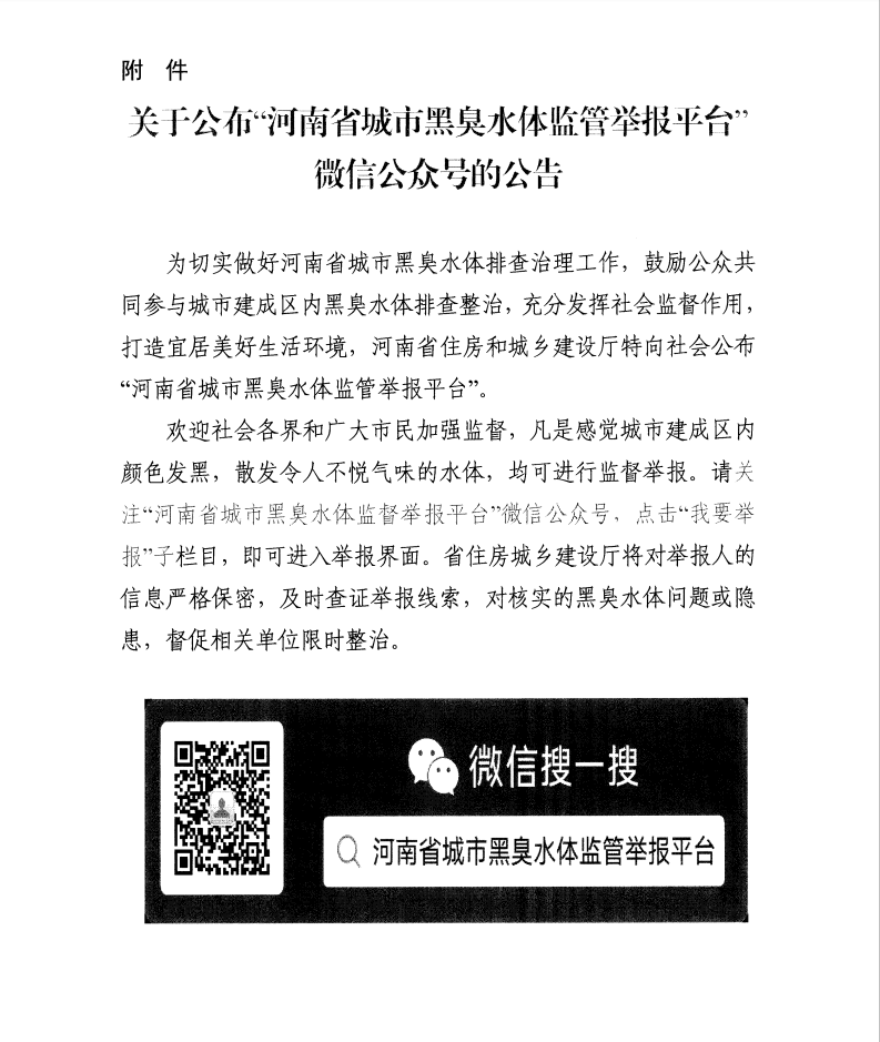 附件:关于公布“河南省城市黑臭水体监管举报平台”微信公众号的公告