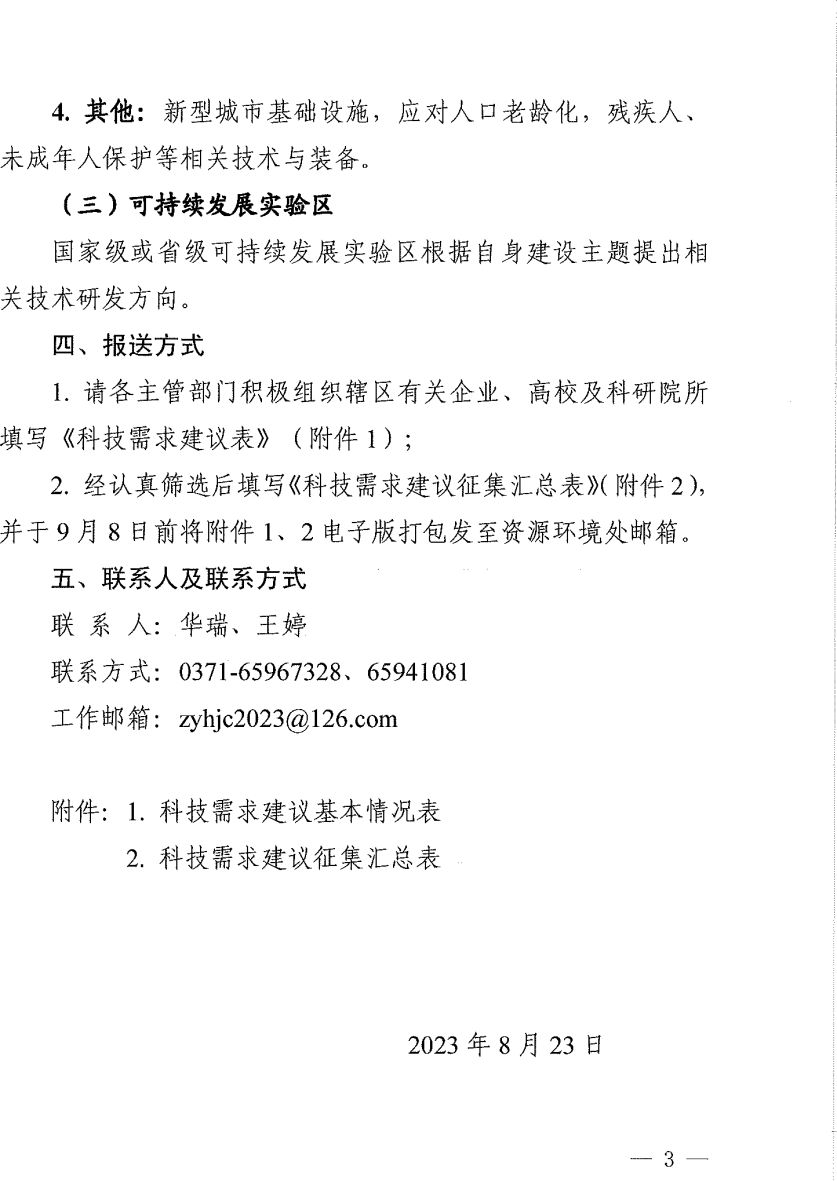 3. 关于征集资源环境与社会事业领域科技创新需求的通知