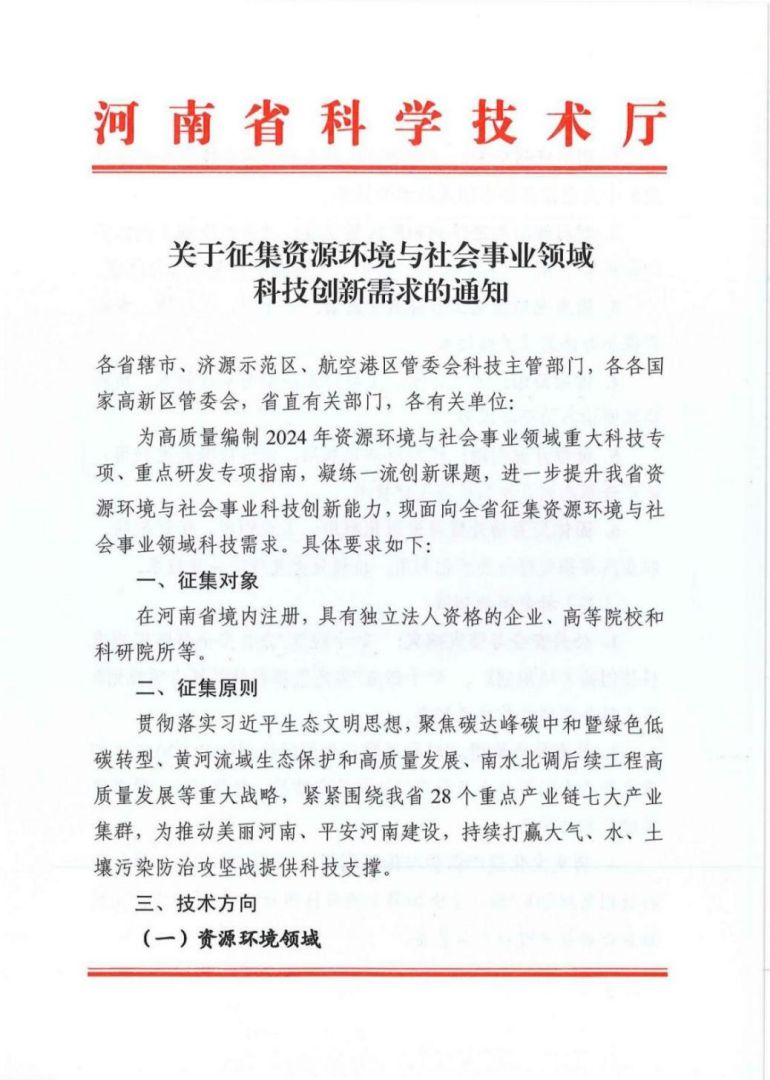 根据河南省科学技术厅《关于征集资源环境与社会事业领域科技创新需求的通知》要求,现面向全省征集住房和城乡建设领域科技创新需求,具体要求如下: