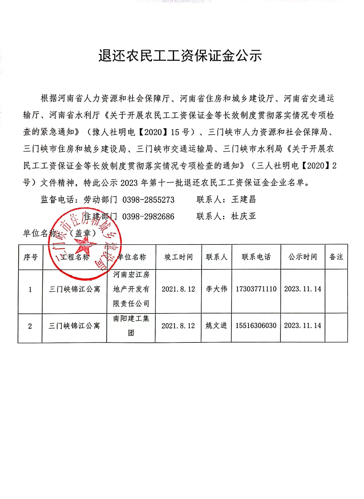 退还农民工工资保证金公示筑小讯2023年11月14日发布关注私信0129558 文章来源于三门峡市住建局,原文链接: 退还农民工工资保证金公示 © 版权声明本资讯不代表筑小讯的观点、立场,所涉信息、数据来源于省市部建委公开发布的信息或第三方,筑小讯不对其准确性、可靠性或完善性提供任何明示或暗示的保证,仅供参考。如果您认为本条资讯存在侵权或不妥之处,请通过官网客服或邮件(zxp@xddjob.com)与我们联系,我们将尽快删除或纠正。如因此给您带来不便,我们深表歉意,感谢您的理解和支持!THE END公示公告# 公示# 三门峡市 此条有用,点赞收藏。如有疑问,相约评论区!点赞58打赏 分享QQ空间微博QQ好友海报分享复制链接收藏