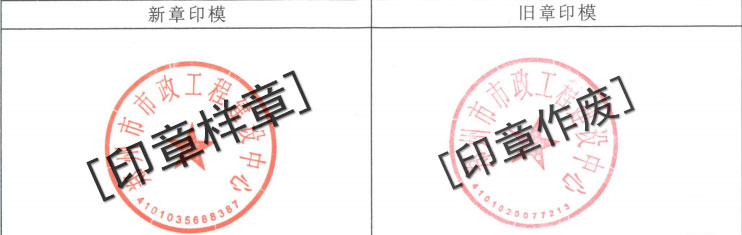 根据郑州市事业单位重塑性改革郑编【2002】99号文件要求,新设立郑州市市政工程建设中心。根据工作需要,依据《中华人民共和国印章管理办法》等相关规定,经研究,决定自2024年1月4日起启用新的“郑州市市政工程建设中心公章(编号:4101035688387)”,原“郑州市市政工程建设中心公章(编号:4101020077213)”同时废止。