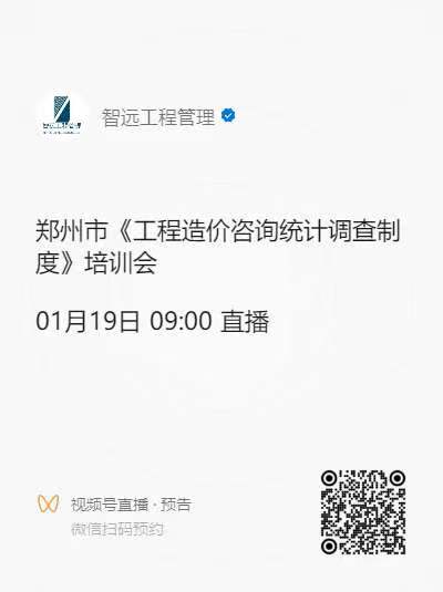 2.该培训会通过智远工程管理有限公司的“微信视频号”直播,参加培训会议人数不限。各企业与会人员请提前下载“微信”APP,可搜索“智远工程管理有限公司”视频号或微信扫描二维码预约(预约后,系统将于开播时发送提醒;不预约也可届时直接进直播间观看)。1月19日上午8:50点起,即可进入直播间观看视频讲解。