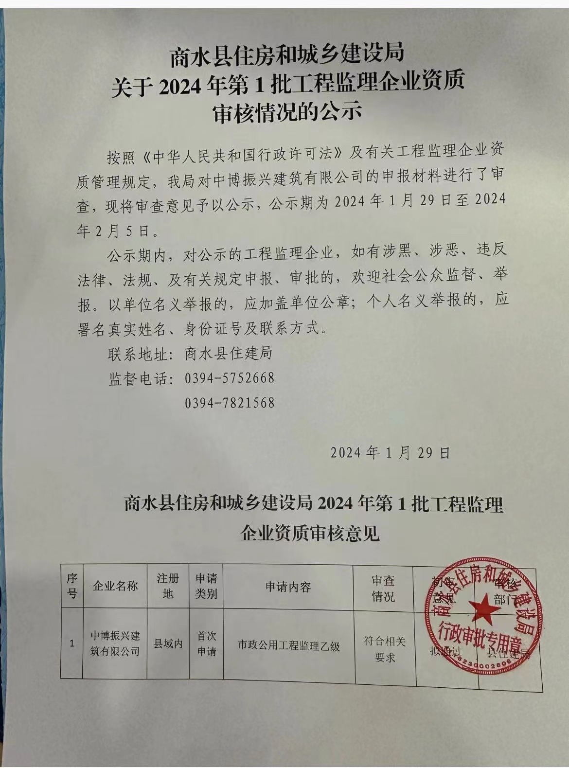 商水县住房和城乡建设局 关于2024年第1批工程监理企业资质 审核情况的公示筑小讯2024年01月29日发布关注私信04776 文章来源于周口市住建局,原文链接: 商水县住房和城乡建设局 关于2024年第1批工程监理企业资质 审核情况的公示 © 版权声明本资讯不代表筑小讯的观点、立场,所涉信息、数据来源于省市部建委公开发布的信息或第三方,筑小讯不对其准确性、可靠性或完善性提供任何明示或暗示的保证,仅供参考。如果您认为本条资讯存在侵权或不妥之处,请通过官网客服或邮件(zxp@xddjob.com)与我们联系,我们将尽快删除或纠正。如因此给您带来不便,我们深表歉意,感谢您的理解和支持!THE END公示公告# 公示# 周口市# 周口市住建局 此条有用,点赞收藏。如有疑问,相约评论区!点赞6打赏 分享QQ空间微博QQ好友海报分享复制链接收藏