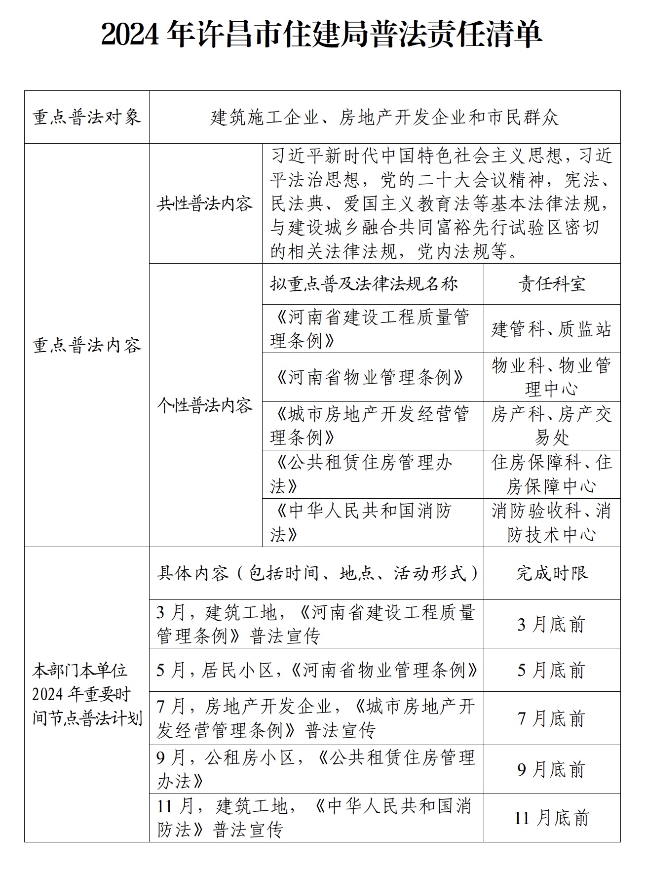 2024年许昌市住建局普法责任清单筑小讯2024年02月29日发布关注私信01426125 文章来源于许昌市住建局,原文链接: 2024年许昌市住建局普法责任清单 © 版权声明本资讯不代表筑小讯的观点、立场,所涉信息、数据来源于省市部建委公开发布的信息或第三方,筑小讯不对其准确性、可靠性或完善性提供任何明示或暗示的保证,仅供参考。如果您认为本条资讯存在侵权或不妥之处,请通过官网客服或邮件(zxp@xddjob.com)与我们联系,我们将尽快删除或纠正。如因此给您带来不便,我们深表歉意,感谢您的理解和支持!THE END公示公告# 许昌市 此条有用,点赞收藏。如有疑问,相约评论区!点赞125打赏 分享QQ空间微博QQ好友海报分享复制链接收藏