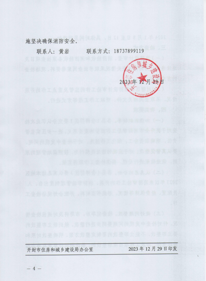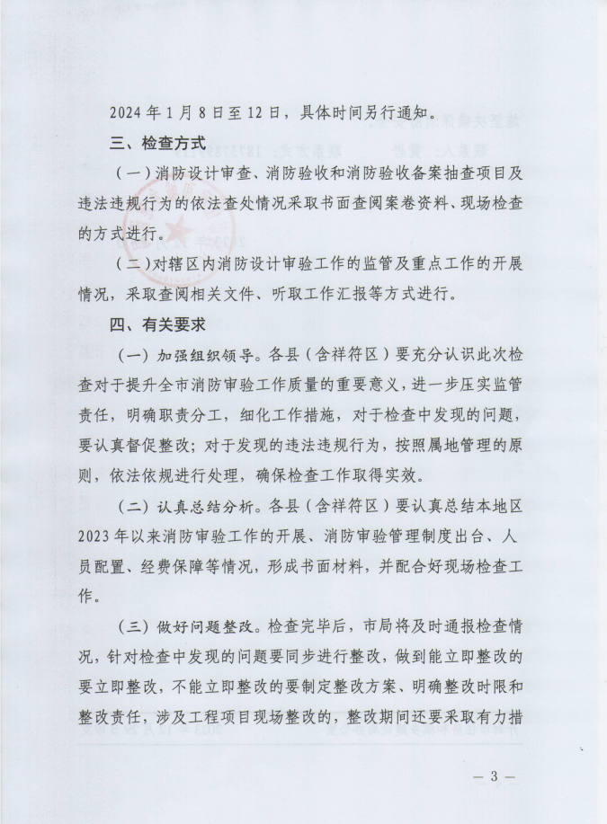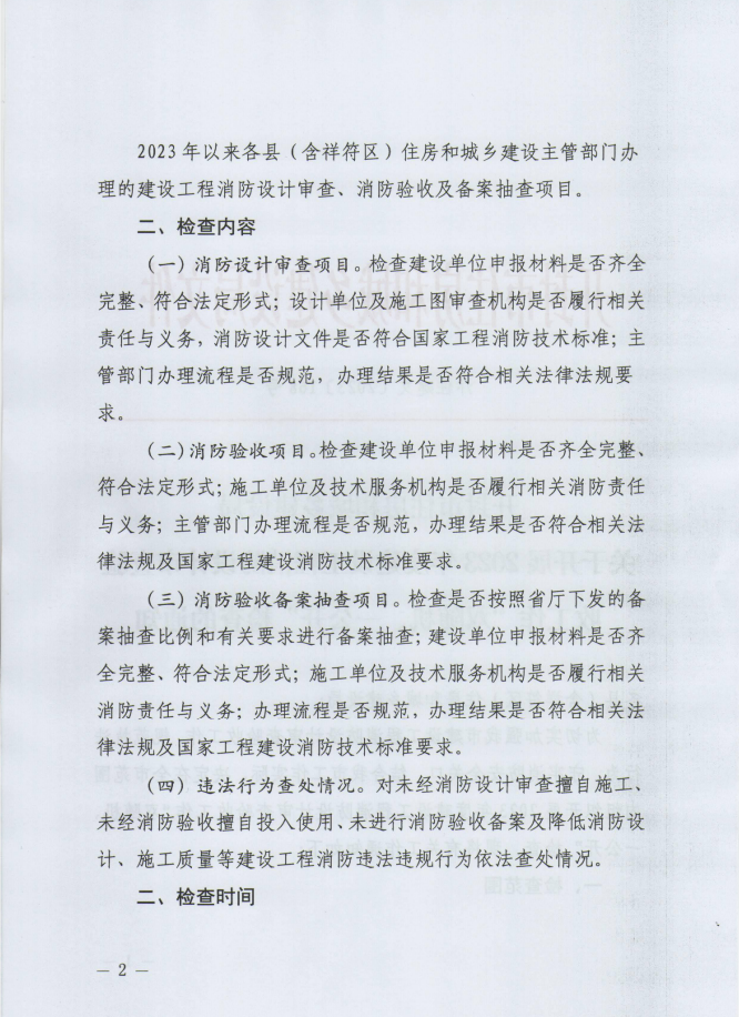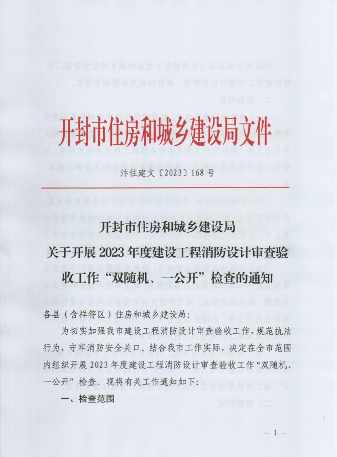 开封市住房和城乡建设局关于开展2023年度建设工程消防设计审查验收工作“双随机、一公开”检查的通知筑小讯2024年03月03日发布关注私信0774111 文章来源于开封市住建局,原文链接: 开封市住房和城乡建设局关于开展2023年度建设工程消防设计审查验收工作“双随机、一公开”检查的通知 © 版权声明本资讯不代表筑小讯的观点、立场,所涉信息、数据来源于省市部建委公开发布的信息或第三方,筑小讯不对其准确性、可靠性或完善性提供任何明示或暗示的保证,仅供参考。如果您认为本条资讯存在侵权或不妥之处,请通过官网客服或邮件(zxp@xddjob.com)与我们联系,我们将尽快删除或纠正。如因此给您带来不便,我们深表歉意,感谢您的理解和支持!THE END公示公告# 通知# 开封市 此条有用,点赞收藏。如有疑问,相约评论区!点赞111打赏 分享QQ空间微博QQ好友海报分享复制链接收藏