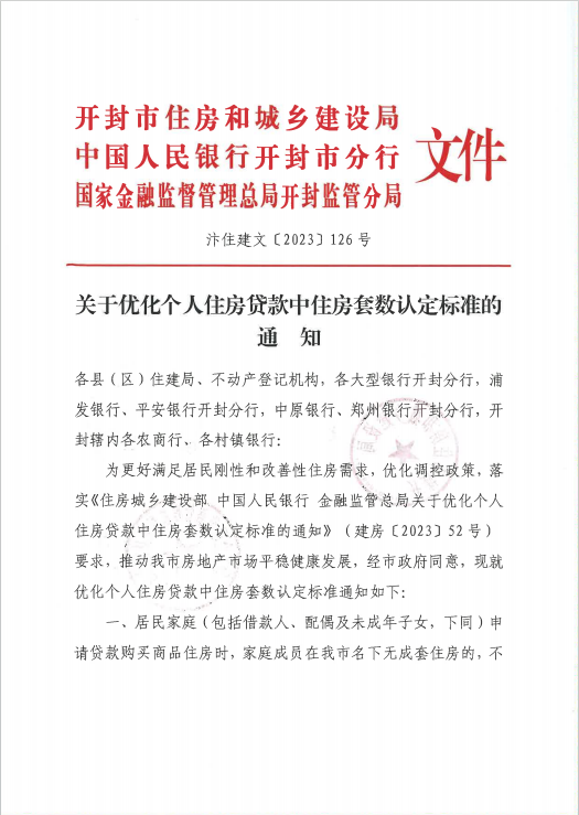 关于优化个人住房贷款中住房套数认定标准的通知筑小讯2024年03月04日发布关注私信092288 文章来源于开封市住建局,原文链接: 关于优化个人住房贷款中住房套数认定标准的通知 © 版权声明本资讯不代表筑小讯的观点、立场,所涉信息、数据来源于省市部建委公开发布的信息或第三方,筑小讯不对其准确性、可靠性或完善性提供任何明示或暗示的保证,仅供参考。如果您认为本条资讯存在侵权或不妥之处,请通过官网客服或邮件(zxp@xddjob.com)与我们联系,我们将尽快删除或纠正。如因此给您带来不便,我们深表歉意,感谢您的理解和支持!THE END公示公告# 通知# 开封市 此条有用,点赞收藏。如有疑问,相约评论区!点赞288打赏 分享QQ空间微博QQ好友海报分享复制链接收藏