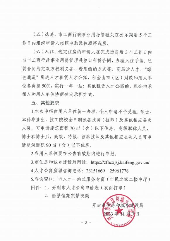 文章来源于开封市住建局,原文链接: 西景佳苑人才公寓配租公告