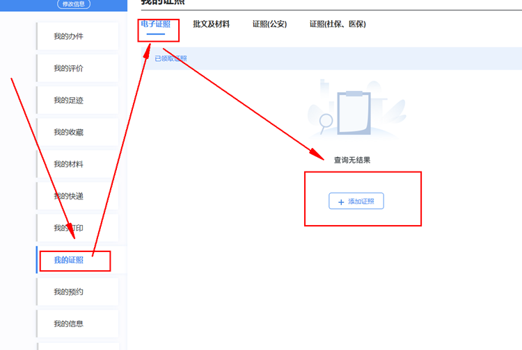 二、个人中心,我的证照,添加证照