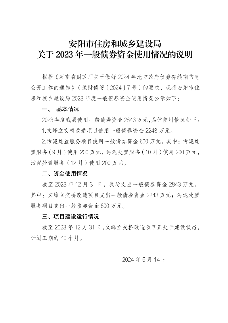 安阳市住建局关于2023年一般债券资金使用情况的说筑小讯2024年07月10日发布关注私信01037189 相关阅读 文章来源于安阳市住建局,原文链接: 安阳市住建局关于2023年一般债券资金使用情况的说 © 版权声明本资讯不代表筑小讯的观点、立场,所涉信息、数据来源于省市部建委公开发布的信息或第三方,筑小讯不对其准确性、可靠性或完善性提供任何明示或暗示的保证,仅供参考。如果您认为本条资讯存在侵权或不妥之处,请通过官网客服或邮件(zxp@xddjob.com)与我们联系,我们将尽快删除或纠正。如因此给您带来不便,我们深表歉意,感谢您的理解和支持!THE END文件通知# 安阳市 此条有用,点赞收藏。如有疑问,相约评论区!点赞189打赏 分享QQ空间微博QQ好友海报分享复制链接收藏