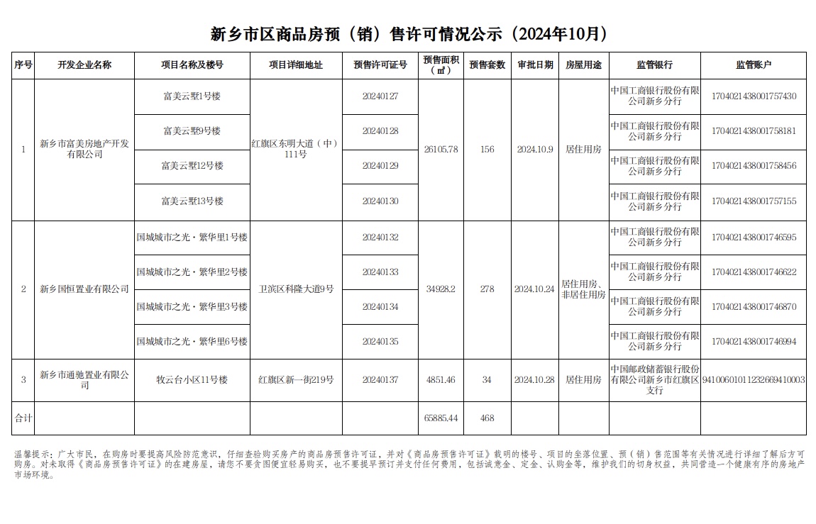 新乡市区商品房预(销)售许可情况公示(2024年10月)筑小讯2024年11月05日发布关注私信024333 文章来源于新乡市住建局,原文链接: 新乡市区商品房预(销)售许可情况公示(2024年10月) © 版权声明本资讯不代表筑小讯的观点、立场,所涉信息、数据来源于省市部建委公开发布的信息或第三方,筑小讯不对其准确性、可靠性或完善性提供任何明示或暗示的保证,仅供参考。如果您认为本条资讯存在侵权或不妥之处,请通过官网客服或邮件(zxp@xddjob.com)与我们联系,我们将尽快删除或纠正。如因此给您带来不便,我们深表歉意,感谢您的理解和支持!THE END公示公告# 公示# 新乡市 此条有用,点赞收藏。如有疑问,相约评论区!点赞33打赏 分享QQ空间微博QQ好友海报分享复制链接收藏