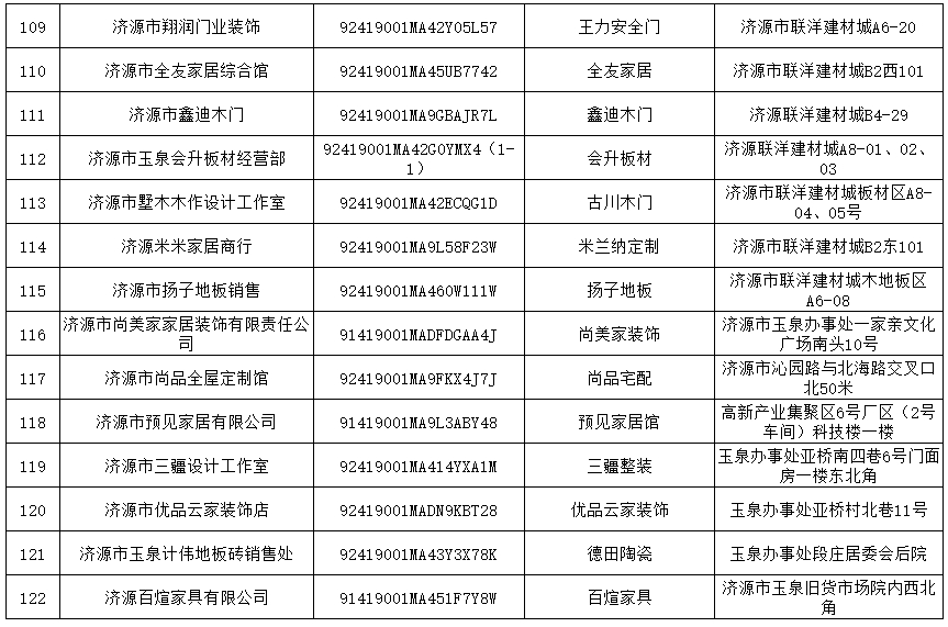 现将济源示范区旧房装修、厨卫改造以旧换新活动122户参与商户名单(第二批)予以公布。
