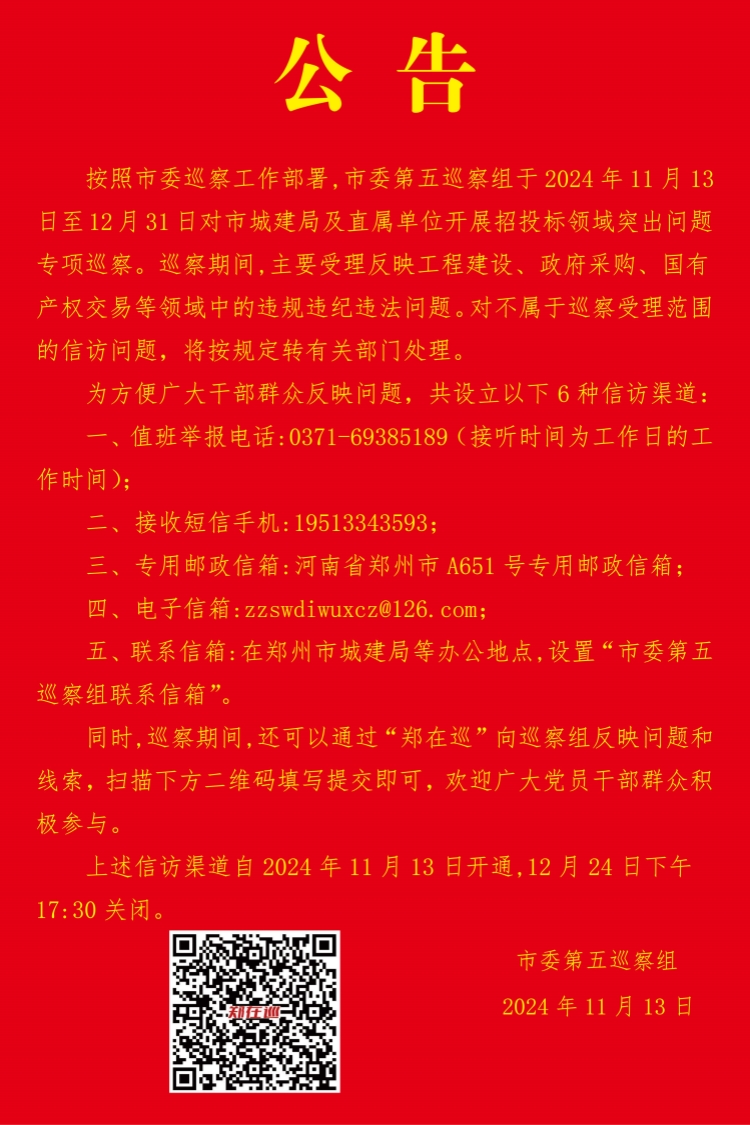 巡察公告筑小讯2024年11月21日发布关注私信056201 文章来源于郑州市住建局,原文链接: 巡察公告 © 版权声明本资讯不代表筑小讯的观点、立场,所涉信息、数据来源于省市部建委公开发布的信息或第三方,筑小讯不对其准确性、可靠性或完善性提供任何明示或暗示的保证,仅供参考。如果您认为本条资讯存在侵权或不妥之处,请通过官网客服或邮件(zxp@xddjob.com)与我们联系,我们将尽快删除或纠正。如因此给您带来不便,我们深表歉意,感谢您的理解和支持!THE END公示公告# 郑州市# 公告# 郑州市住建局 此条有用,点赞收藏。如有疑问,相约评论区!点赞201打赏 分享QQ空间微博QQ好友海报分享复制链接收藏