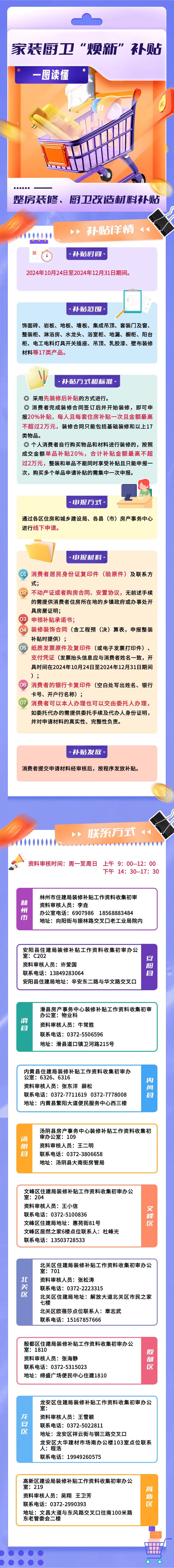 一图读懂家装厨卫“焕新”补贴筑小讯2024年11月29日发布关注私信01857142 相关阅读 文章来源于安阳市住建局,原文链接: 一图读懂家装厨卫“焕新”补贴 © 版权声明本资讯不代表筑小讯的观点、立场,所涉信息、数据来源于省市部建委公开发布的信息或第三方,筑小讯不对其准确性、可靠性或完善性提供任何明示或暗示的保证,仅供参考。如果您认为本条资讯存在侵权或不妥之处,请通过官网客服或邮件(zxp@xddjob.com)与我们联系,我们将尽快删除或纠正。如因此给您带来不便,我们深表歉意,感谢您的理解和支持!THE END文件通知# 安阳市 此条有用,点赞收藏。如有疑问,相约评论区!点赞142打赏 分享QQ空间微博QQ好友海报分享复制链接收藏