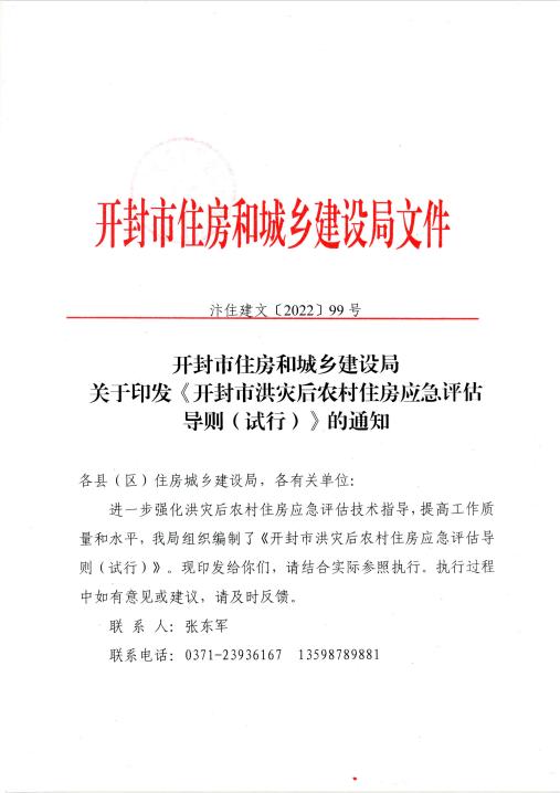 开封市住房和城乡建设局关于印发《开封市洪灾后农村住房应急评估导则(试行)》的通知筑小讯2022年06月14日发布关注私信019477 【开封市住建局】【通知公告】 文章来源于开封市住建局 : 开封市住房和城乡建设局关于印发《开封市洪灾后农村住房应急评估导则(试行)》的通知 © 版权声明本资讯不代表筑小讯的观点、立场,所涉信息、数据来源于省市部建委公开发布的信息或第三方,筑小讯不对其准确性、可靠性或完善性提供任何明示或暗示的保证,仅供参考。如果您认为本条资讯存在侵权或不妥之处,请通过官网客服或邮件(zxp@xddjob.com)与我们联系,我们将尽快删除或纠正。如因此给您带来不便,我们深表歉意,感谢您的理解和支持!THE END公示公告# 通知# 公告# 开封市 此条有用,点赞收藏。如有疑问,相约评论区!点赞77打赏 分享QQ空间微博QQ好友海报分享复制链接收藏